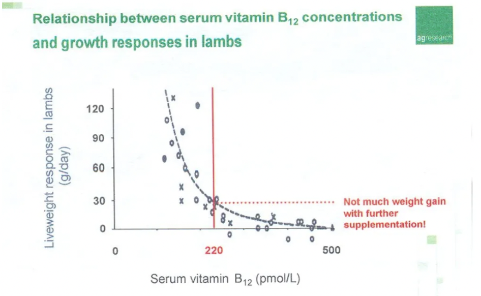 Long-acting vitamin B12 injections target animals which require supplementation and last long so repeated doses are unnecessary. BUT they are $$$. They are a good option for lambs going to be on farm for a long time (eg. replacements and small lambs that will take a long time to reach slaughter weight)