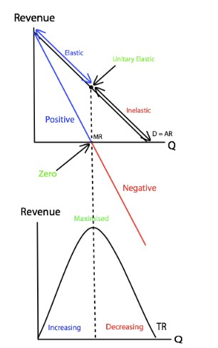 The diagram shows that when total revenue is increasing, marginal revenue is positive and demand is elastic.