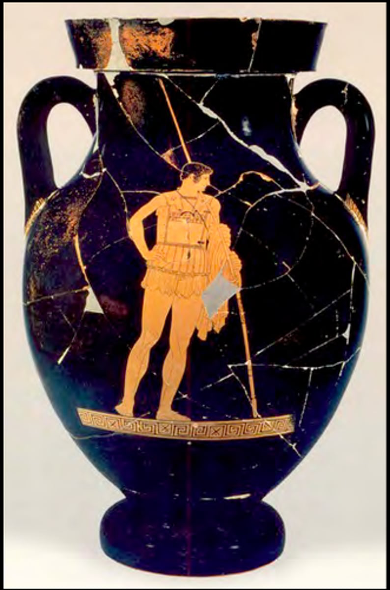Single figure of achilles on one side. Showerd ethos, focus on an individual's character.High Classical
