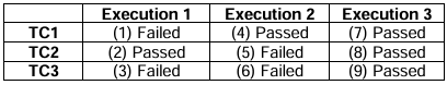 You are testing a user story with three acceptance criteria: AC1, AC2 and AC3. AC1 is covered by test case TC1, AC2 by TC2, and AC3 by TC3. The test execution history had three test runs on three consecutive versions of the software as follows: