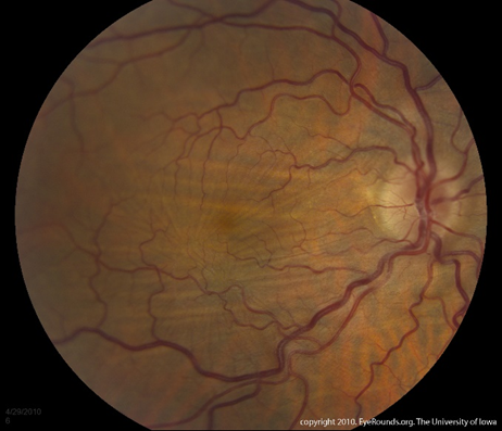 Choroidal folds - lines/streaks along the retina as seen in image below