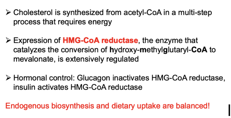 Rate-limiting and regulates step in pathway: HMG-CoA reductase