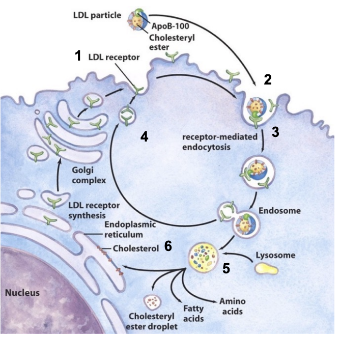Briefly outline LDL endocytosis and the role of the LDL receptor.