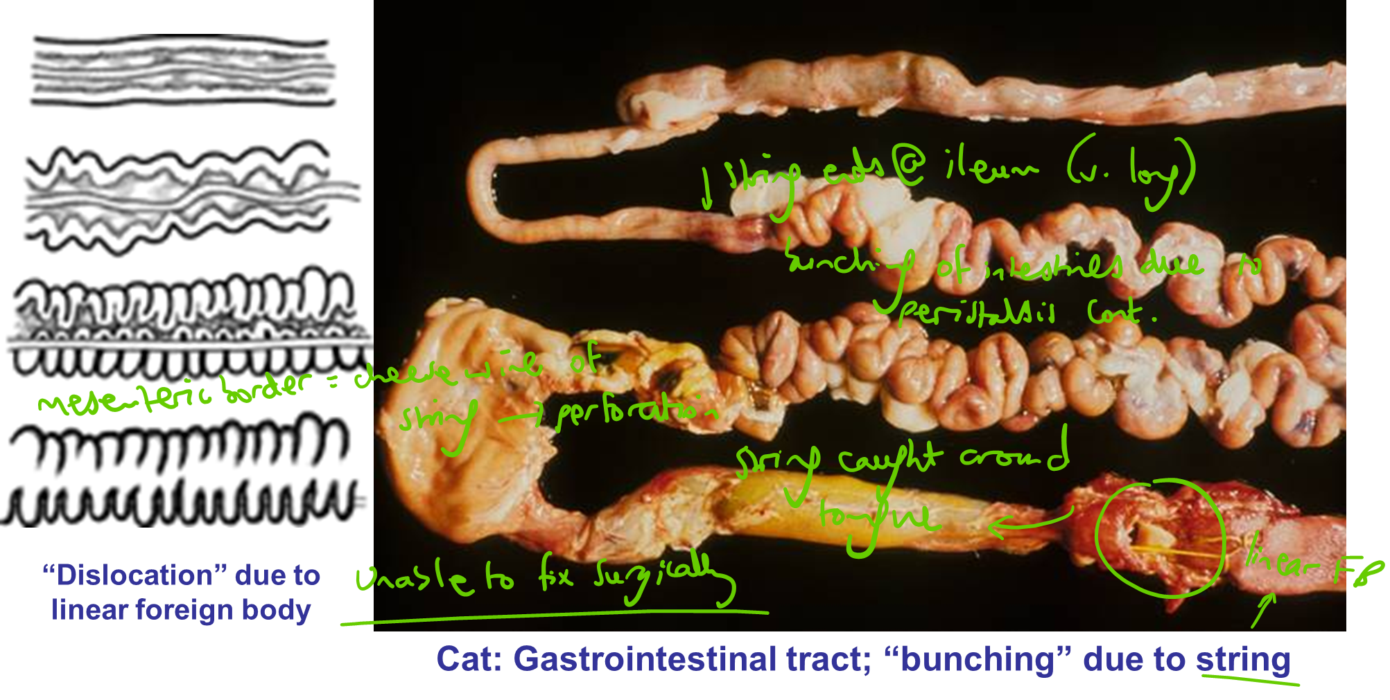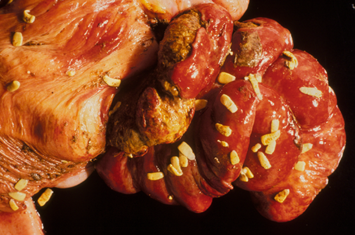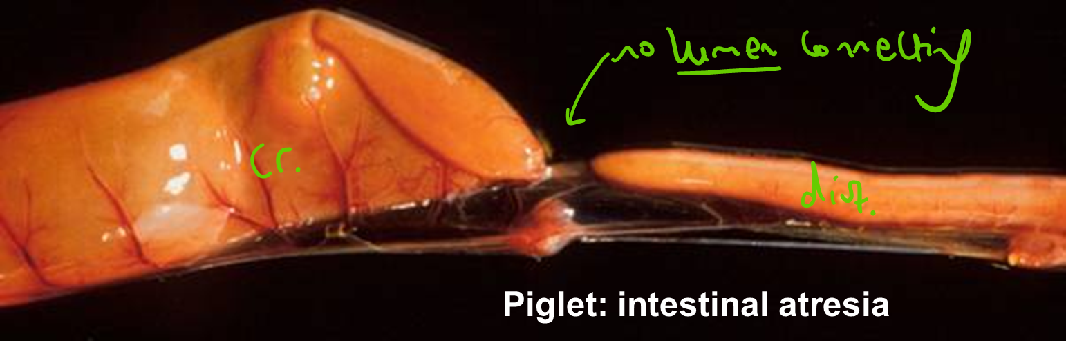 dog —> mainly small intestine (parvovirus infection,distemper)