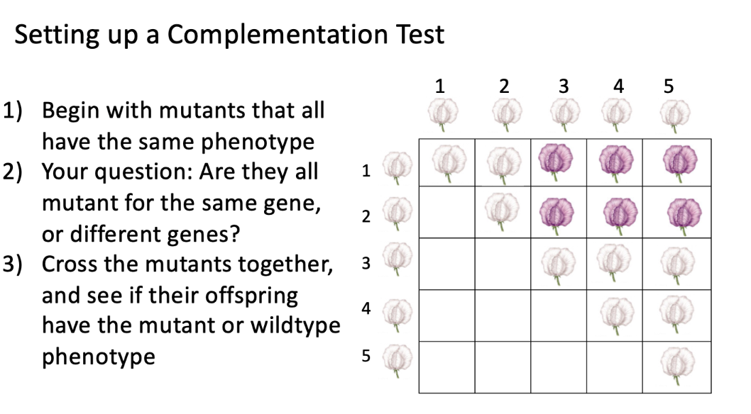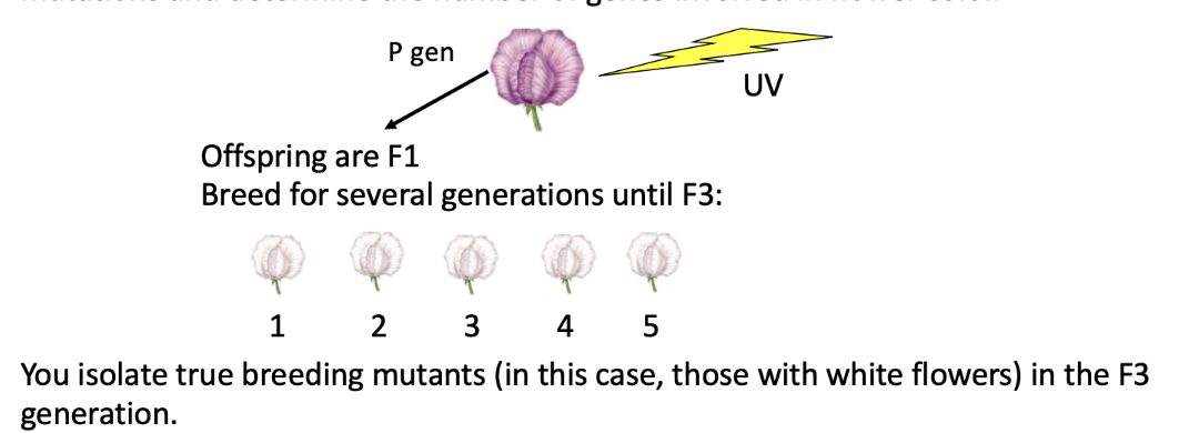 you expose wild type purple flowers to Ultraviolet radiation to see if you can identify a bunch of new mutations and determine the number of genes involved in flower color.