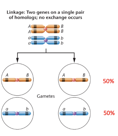 ONLY GENETIC LINKAGE: percentage of recombinant offspring is a function of the distance between the two genes