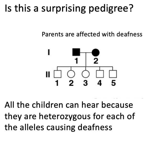 ex. COL4A5 & alport syndrome (x-linked dominant)