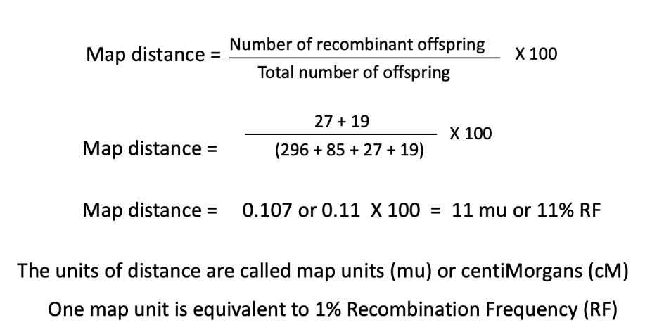 LO 18.3 Calculate the probability of a particular gamete being produced from an individual when provided with the map distance between two linked genes.