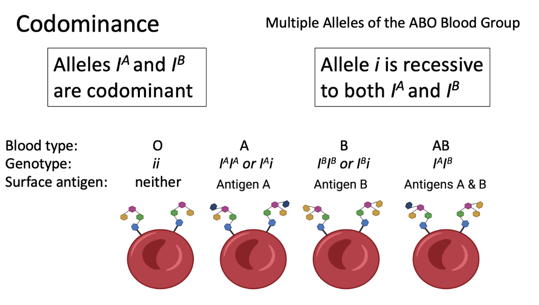 the blood type alleles in humans show example(s) of which type(s) of inheritance patterns?