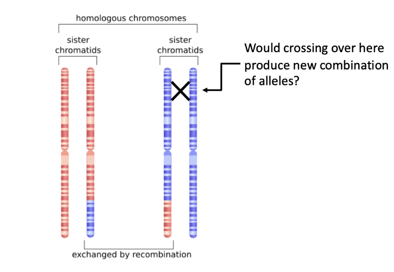 can not occur in sister chromatids because they are identical and you won’t see any change in the genotypes or the phenotype