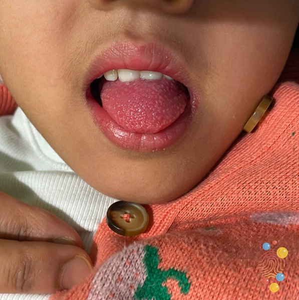 Scarlet fever- sand paper rash on torso, strawberry tongue, fever, sore throat.