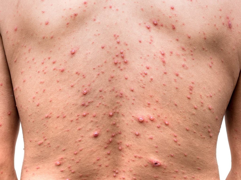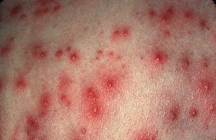 Clinical presentation: itching, swelling, lumps, spots, or blisters