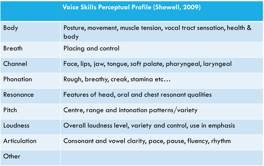 Subjective judgment about the sound of the voice, what words might you use to describe a voice? Clients may not be familiar with SLT terminology