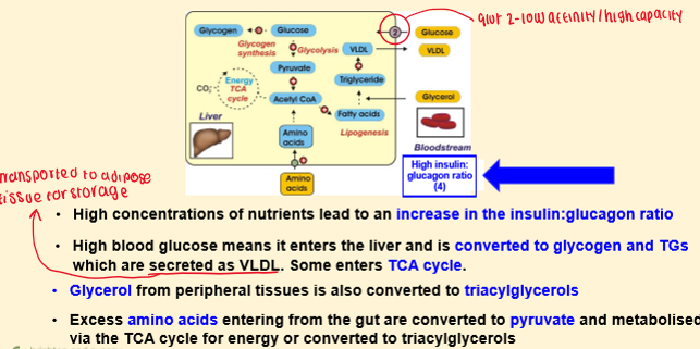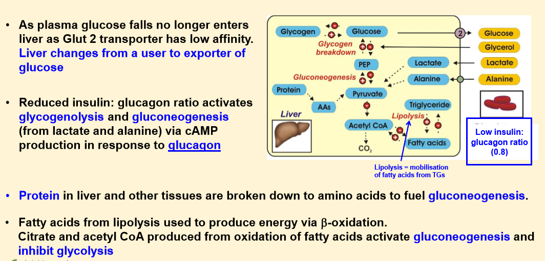 •The ‘switch’ that determines metabolic changes is the molar ratio of insulin to glucagon in the blood