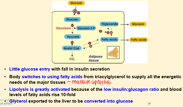 •Characterized by low insulin and high glucagon (a low insulin/glucagon ratio)