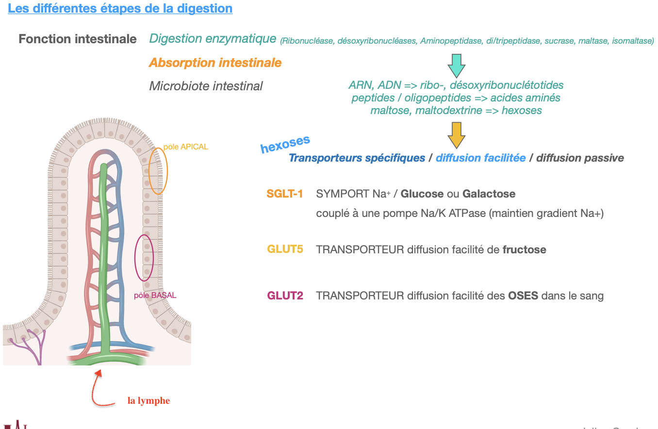 → Les hexoses sont donc absorbés activement ou par diffusion facilitée selon leur nature.