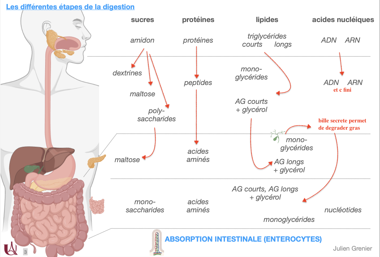 1) Que se passe-t-il suite à la digestion enzymatique ? (absorption intestinale)