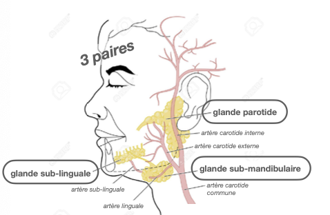 Quelles sont les 3 glandes salivaires et par quels systèmes sont-elles contrôlées/innervées ?