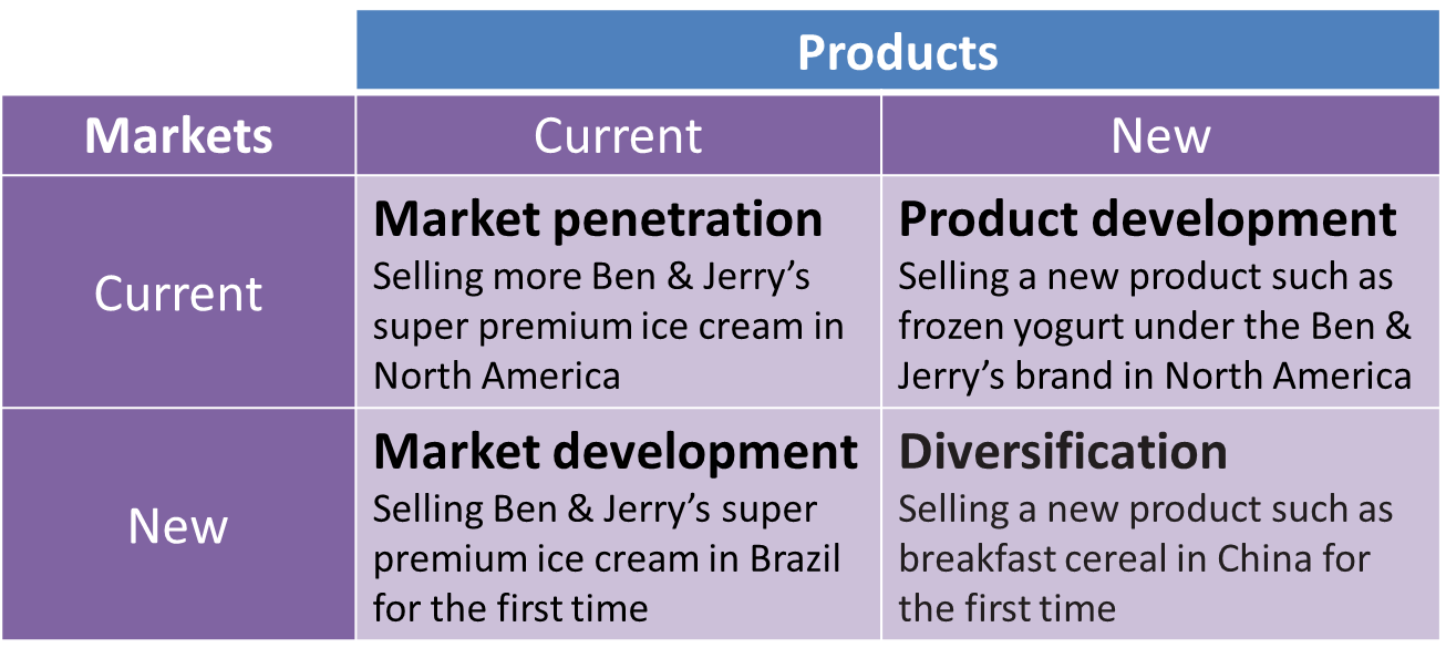 Growth Strategies: Where do we want to go? FOUR MARKET-PRODUCT STRATEGIES