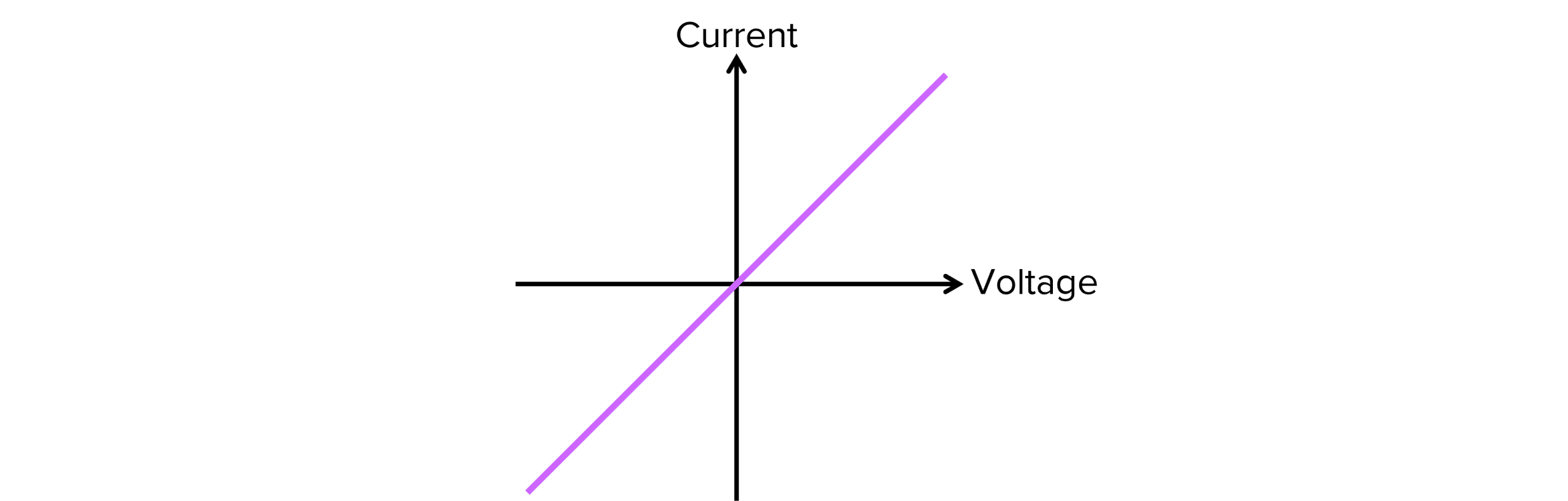 What does it mean when an I-V characteristic is a straight line through the origin?