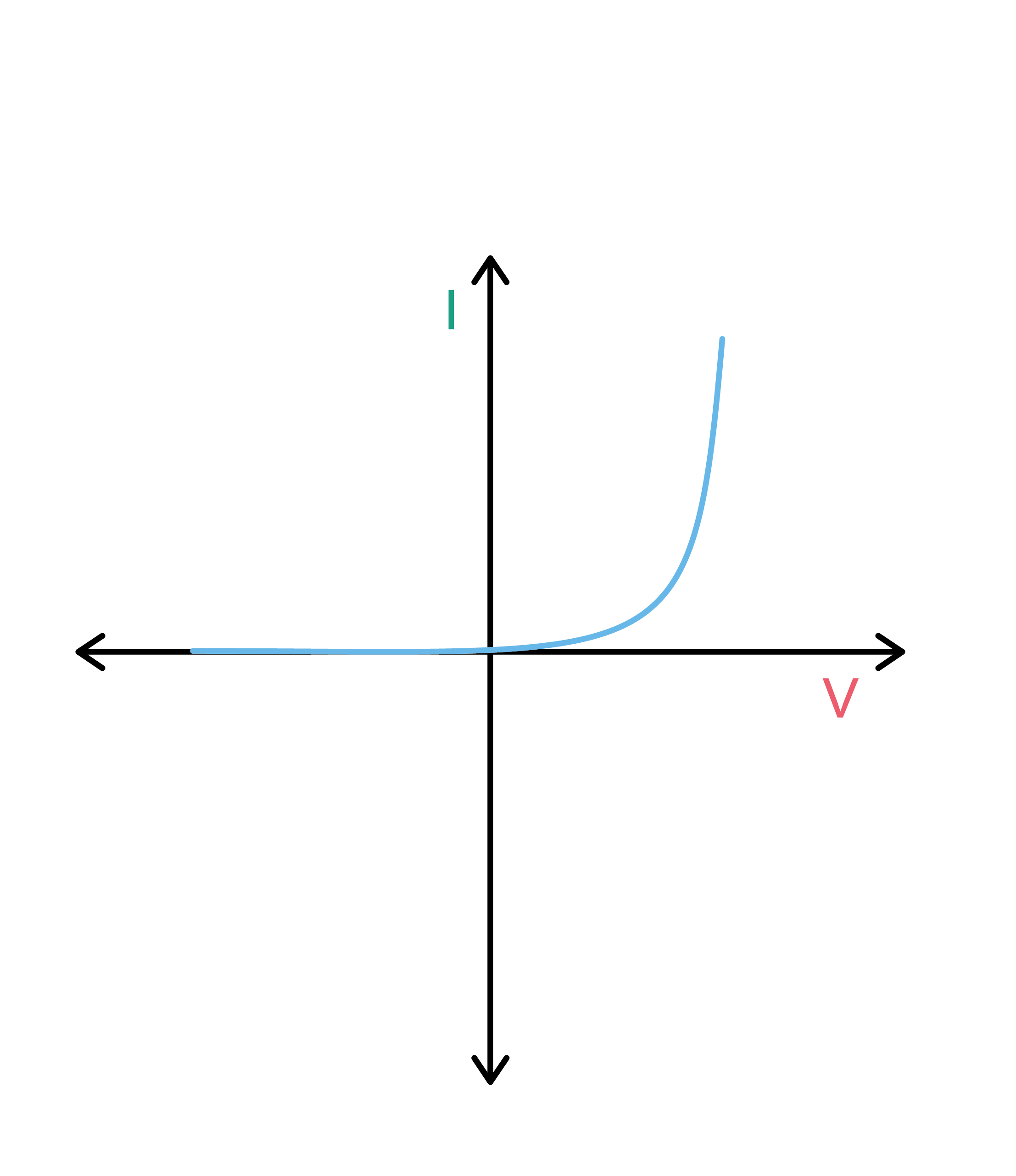 Above 0V, resistance decreases as p.d. increases, therefore current increases.