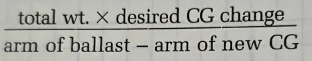 The formula has four variables: weight shifted, total weight, CG change required, and distance weight is shifted. It is written as: