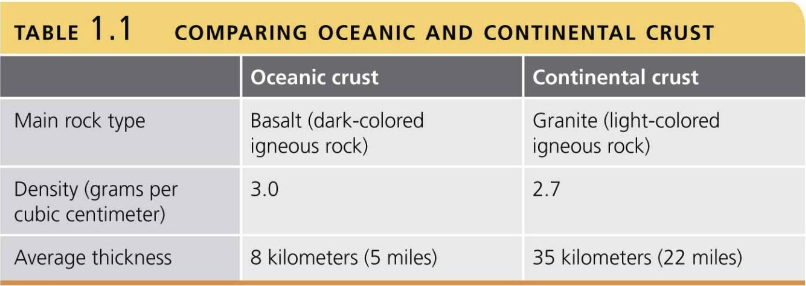 The outermost layer, the crust, is low-density, mainly composed of silicate minerals.