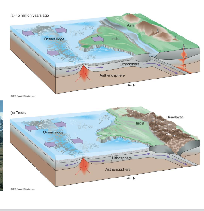 If granite and granite smash into each other, you will have high mountain chains, tall/uplifted mountains: Himalayan (still growing)
