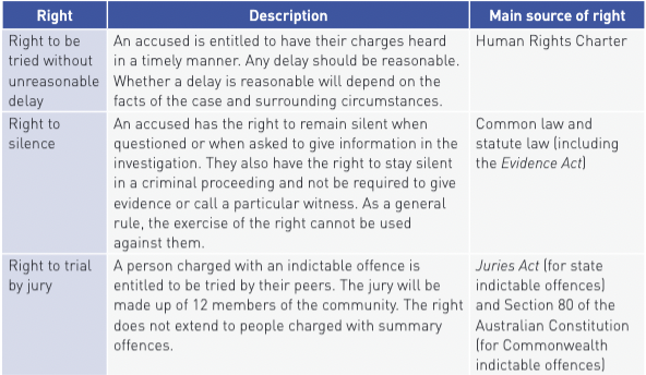 The 3 rights of the accused table