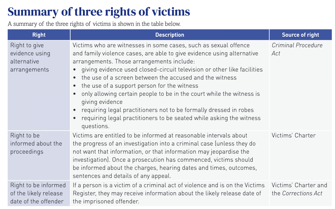 Rights of Victims table