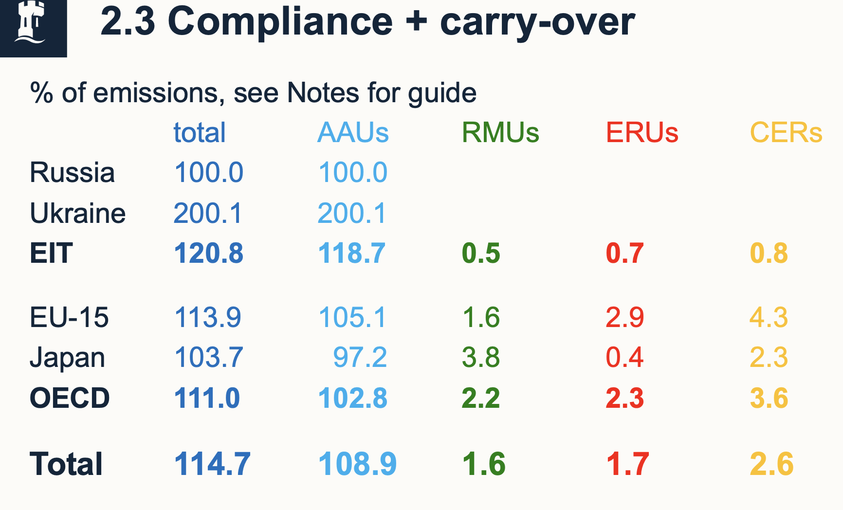 EiT given generous targets based on previous economy capacity (targets above current E) - could choose target year so chose target when economy booming