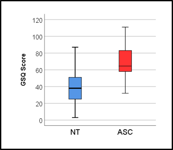 -scores on GSQ questionnaire against scores on a questionnaire that measures autistic traits