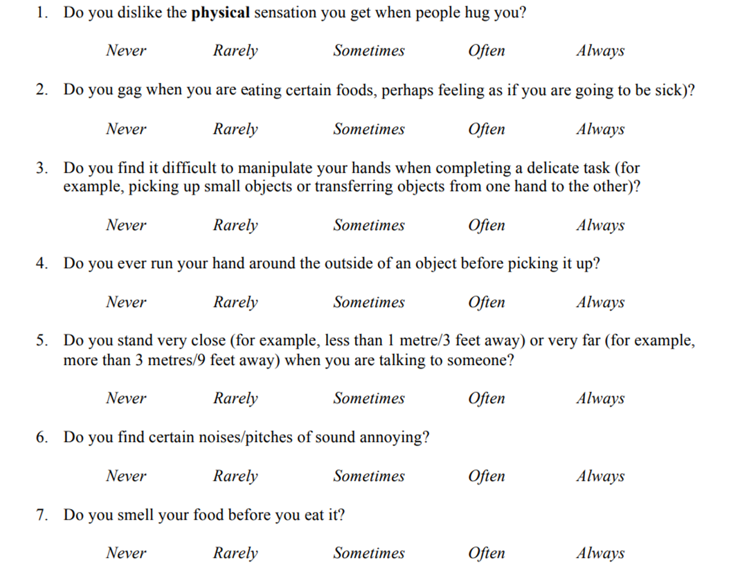 -some questions on the SRS ask about sensory experiences
