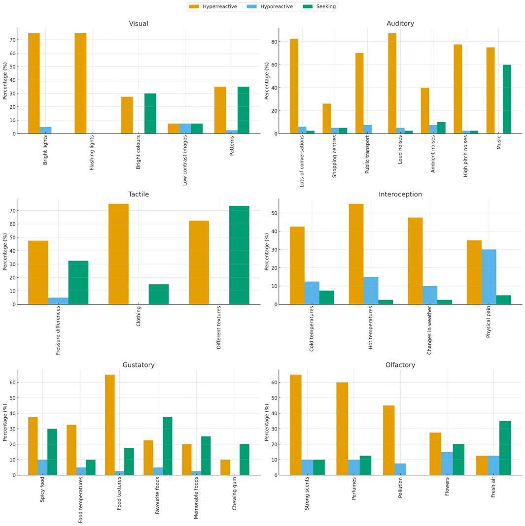 -autistic participants identified as experiencing hyperreactivity, hyporeactivity and sensory seeking
