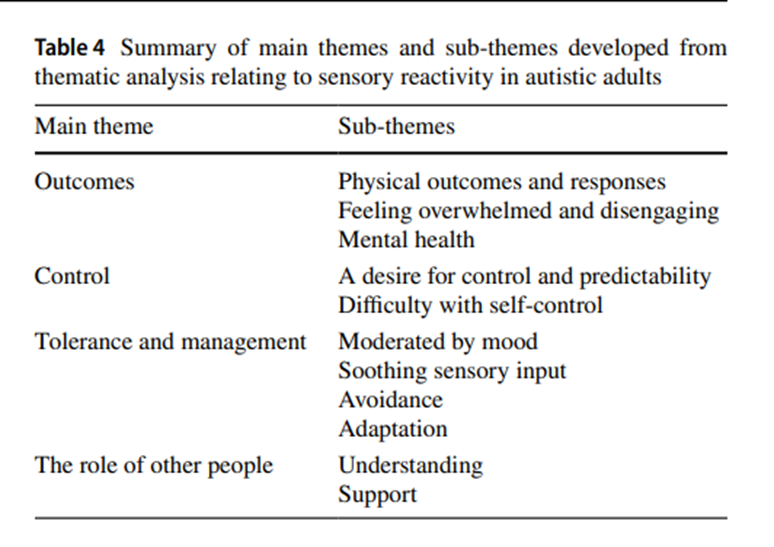 thematic analysis relating to sensory reactivity (qualitative studies)