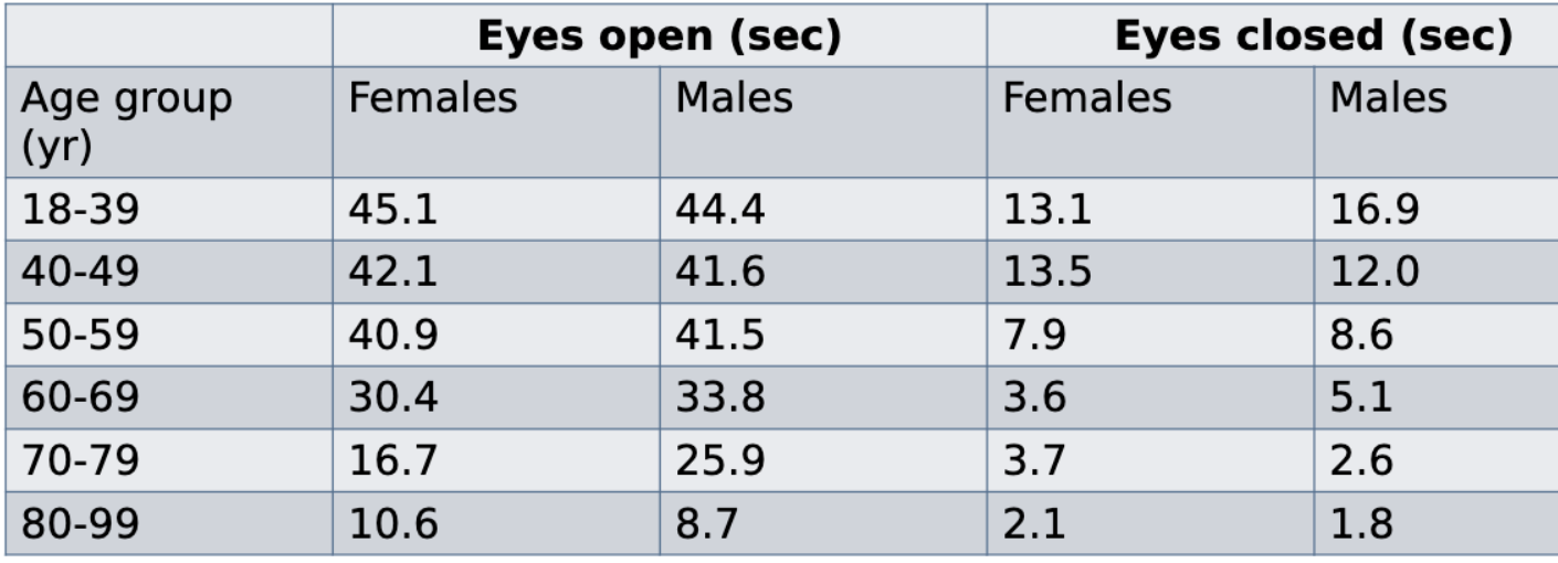 Age-sex norms for the one-leg stance test