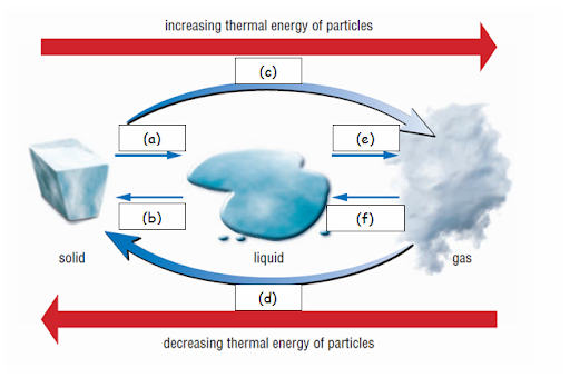 a) Melting b) solidification c) Sublimation d) Deposition e) Evaporation f) Condensation
