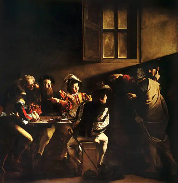silný tenebrismus, prudké diagonály, dramatické gestikulace, realistické výrazy, divadelní světlo
