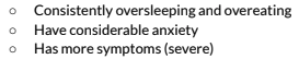 Some of its central indications are somatic or vegetative symptoms, behavioral and emotional shutdown, and a duration of approximately 4 to 9 months if untreated