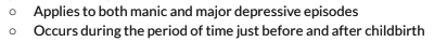 It refers to bipolar disorder specifiers that refer to manic episodes around childbirth
