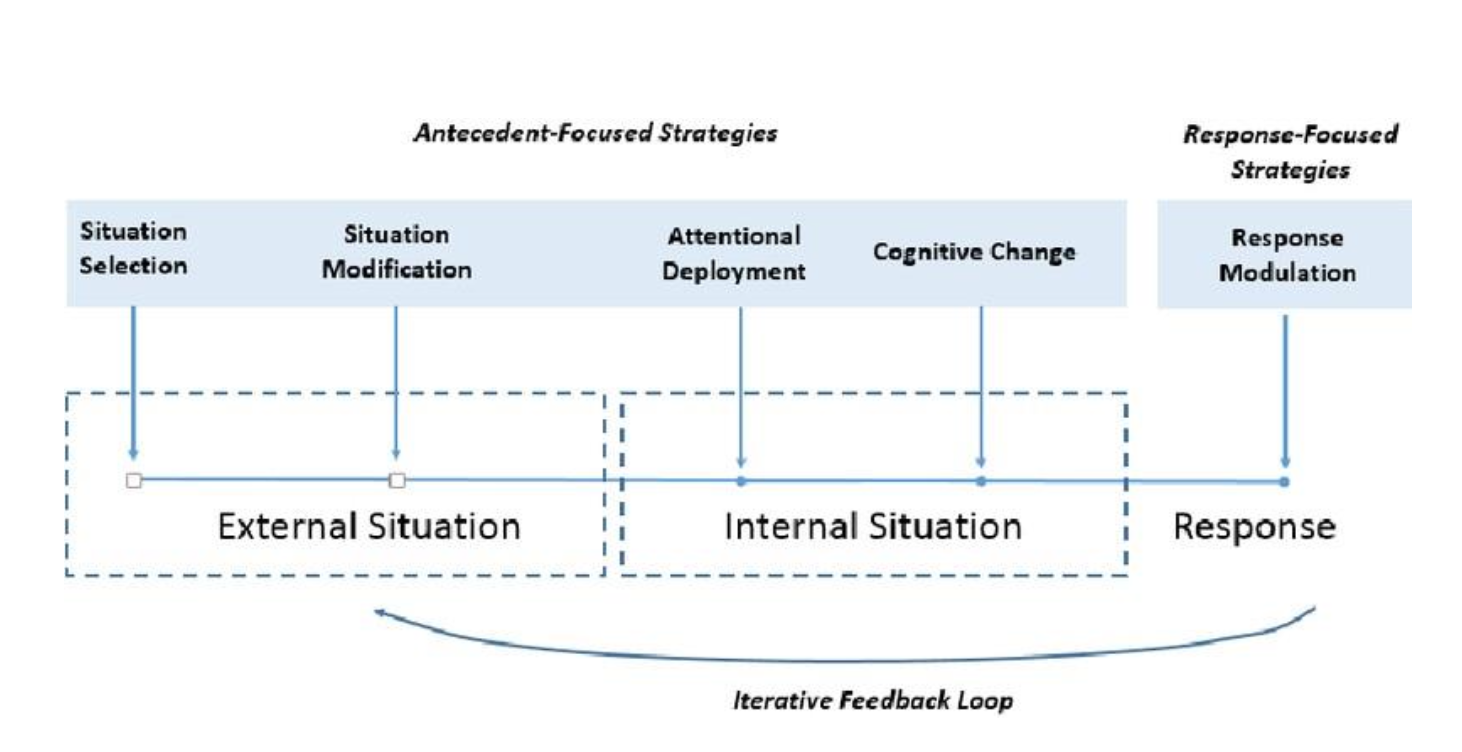 Situation selection → Situation modification → attentional deployment → cognitive change → response modulation