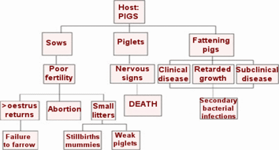 Pregnat sows: abortions, stillbirth, fetal malformation