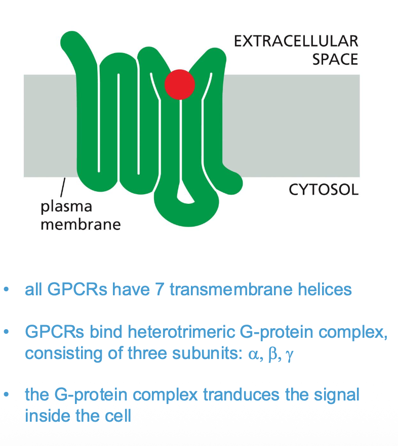 Firstly we have a signal molecule (ligand) which binds to the receptor and undergoes a conformational change and that causes the receptor to bind to a G-protein. (Lipidated molecules attached to the amino acids which makes sure they are bound to the membrane before they can be received by a receptor.)