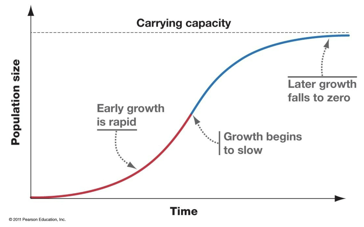 as a population approaches a habitat’s carrying capacity, its growth rate should slow