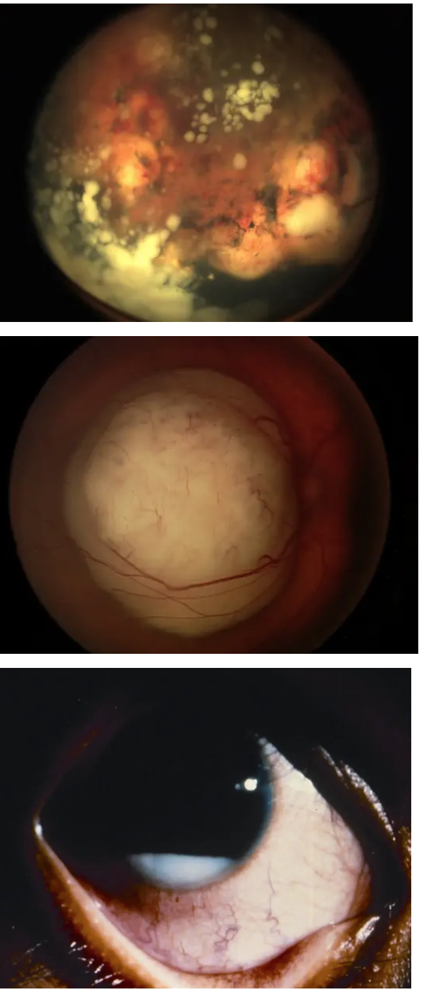 Reduced VA, recurrent uveitis from uvea invaded, psuedo-hypopyon