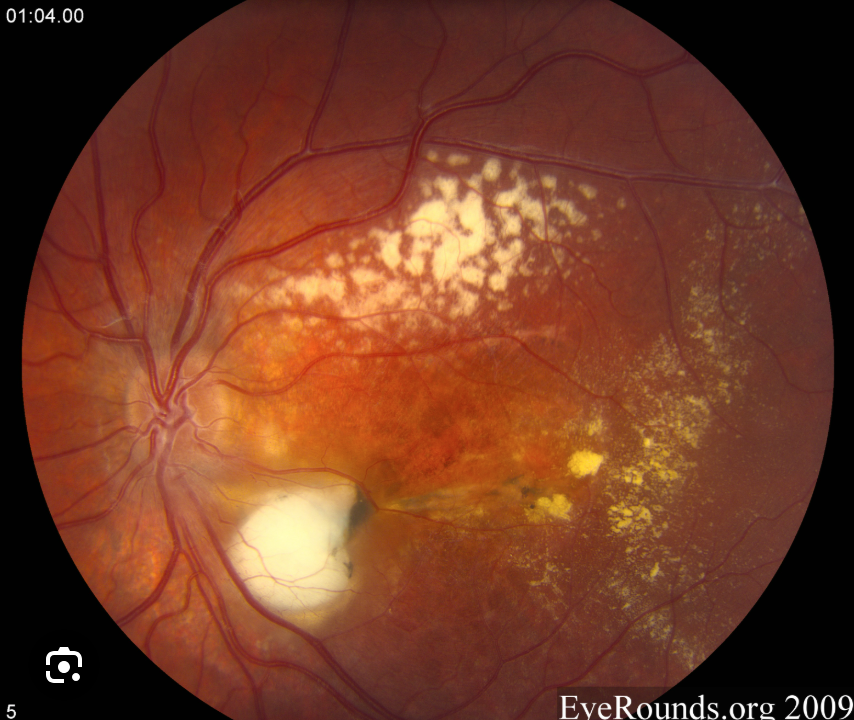 HIV Retinopathy | CWS in a patient with a low T-cell count. | Manage the HIV (HAART). |