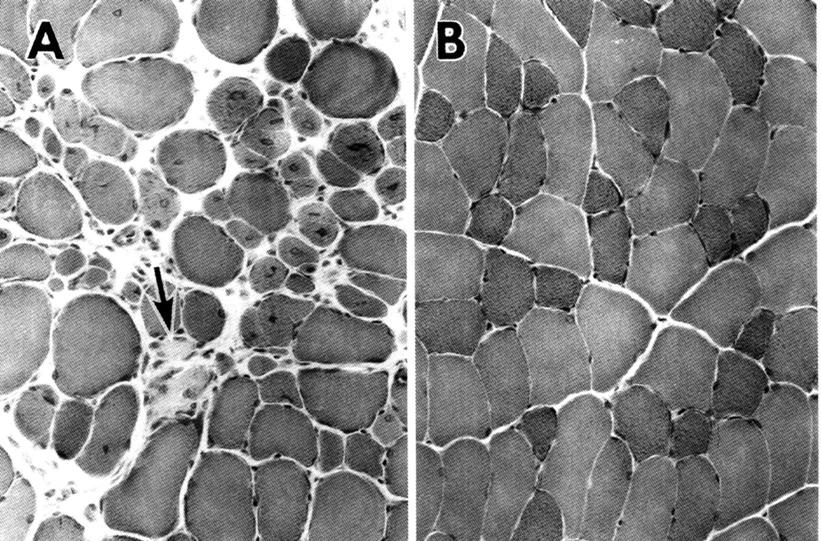 Muscular dystrophy. Reduced dystrophin expression in a cat colony U of Missouri-Columbia Reduced level of activity, stiff gait, and general skeletal muscle hypertrophy (involving tongue and diaphragm)