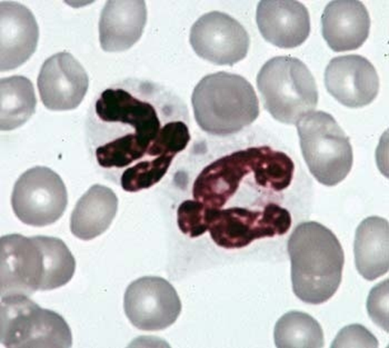 Neutrophils with large granules is commonly seen with which condition in cats?