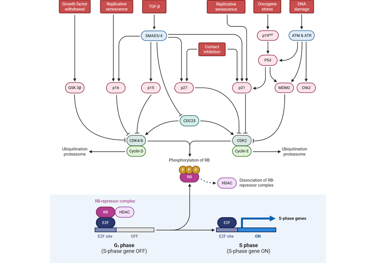 the action of specific CDK-inhibiting proteins