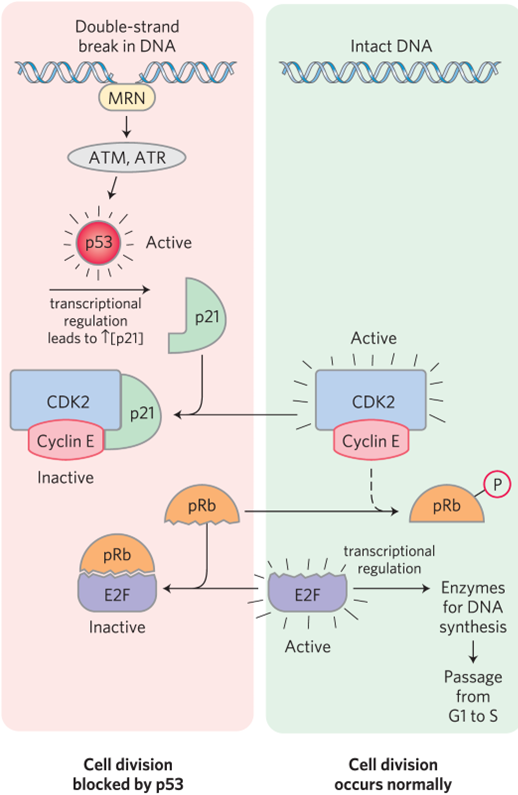 p53 activation upregulates transcription of CKI genes such as p21